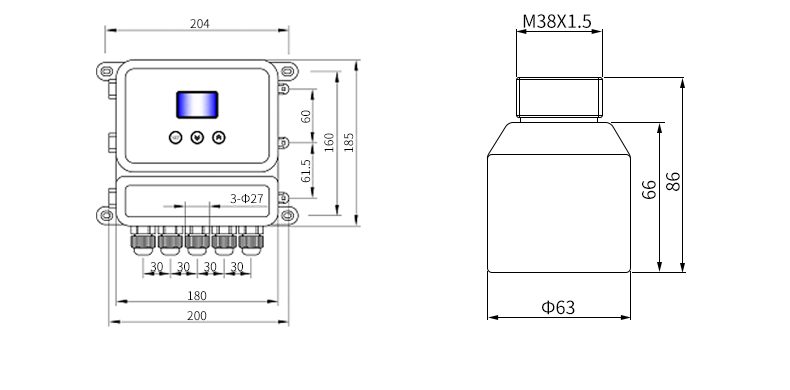 具有溫度補償、窗口鎖定及抗干擾糾錯功能、介質(zhì)聲速調(diào)整等功能(訂貨時選購)。