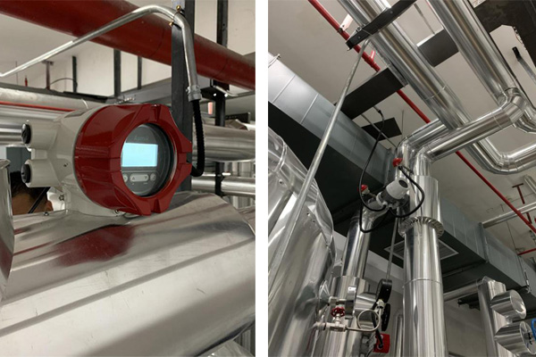現(xiàn)場的電磁熱量表均部采用一體式法蘭連接,并用熱量表的數(shù)據(jù)遠(yuǎn)傳功能將數(shù)據(jù)實(shí)時(shí)傳輸至中控室,實(shí)現(xiàn)中控室以及現(xiàn)場的熱量監(jiān)測,保證生產(chǎn)過程地平穩(wěn)快速進(jìn)行。