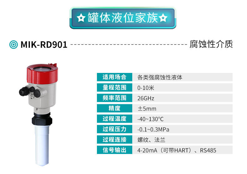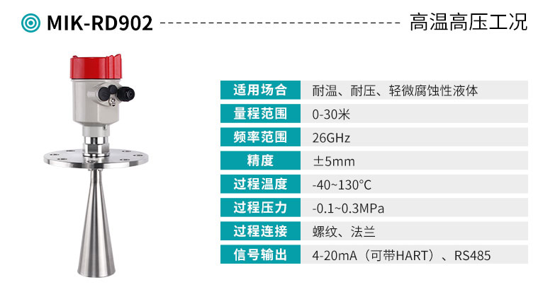 米科MIK-RD901/902高頻雷達(dá)液位計(jì),26G高頻系列可用于需要發(fā)射角度小精度高的場(chǎng)合。