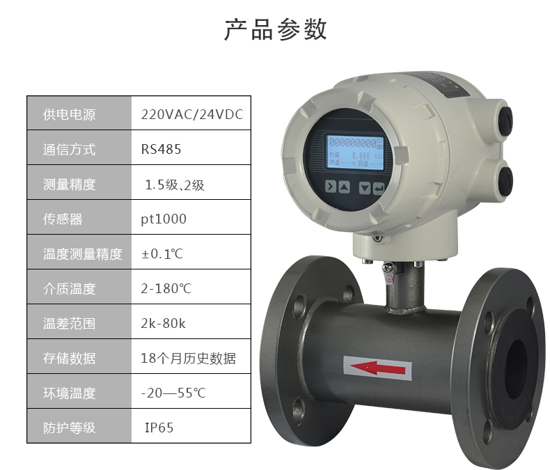 13758257245電磁熱量表主要是對(duì)熱交換系統(tǒng)中載能介質(zhì)(液體水)的供水溫度、回水溫度及瞬時(shí)流量進(jìn)行實(shí)時(shí)測(cè)量,并按照熱力學(xué)能量計(jì)算公式,對(duì)系統(tǒng)消耗的冷量或熱量值進(jìn)行計(jì)算并保存的裝置。其中電磁式流量傳感器是通過(guò)法拉第電磁感應(yīng)定律,將瞬時(shí)流量信號(hào)線性的變化為感應(yīng)電動(dòng)勢(shì)這一電信號(hào),從而得到瞬時(shí)流量信號(hào)。計(jì)算器將流量信號(hào)與溫度傳感器采集的溫度信號(hào)進(jìn)行積算,得出我們需要的能量值。