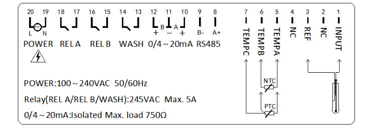 12、0/4 ~ 20mA B+:B路電流輸出端+