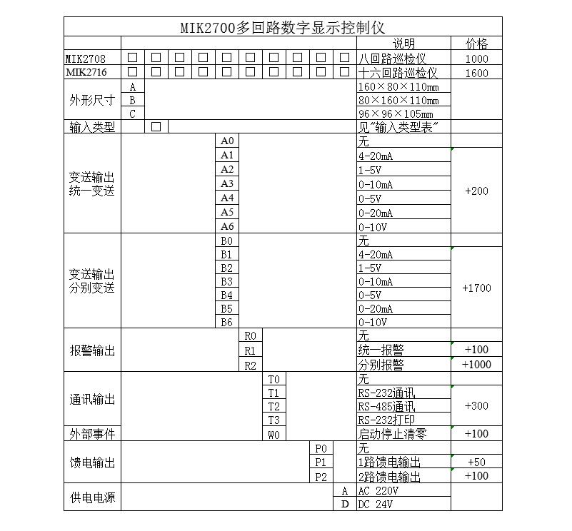 多回路數(shù)字顯示控制儀采用了表面貼裝工藝,全自動貼片機生產(chǎn),具有很強的抗干擾能力。本儀表支持多種信號類型輸入,可與各類傳感器、變送器配套使用,實現(xiàn)對溫度、壓力、液位、速度、力等物理量的測量顯示,可巡回檢測8~16路測量信號,帶8路或16路“統(tǒng)一報警輸出”、“16路分別報警輸出”、統(tǒng)一變送輸出”、“8路分別變送輸出”功能、485/232通訊等輸出功能,適用于需要進行多測量點巡回檢測的系統(tǒng)。